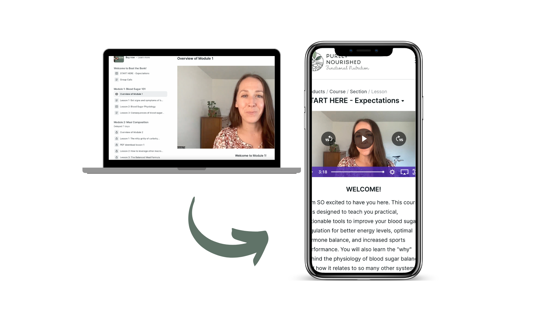 Comprehensive Curriculum: 5 weeks of jam-packed, highly transformational video modules covering the science behind blood sugar regulation, meal composition & timing, meal planning, continuous glucose monitoring, supplementation, and practical strategies & tips. Each week you'll gain clear action steps and protocols to start implementing new habits right away.